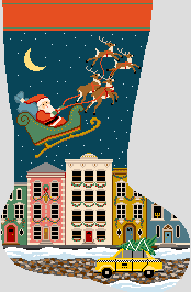 There is nothing quite like the excitement of a busy city, in anticipation of the holiday celebrations ahead! Shopping, decorations to adore, parties to attend, and the simple joy of listening to a group of carolers sing. Create some new memories this Christmas by stitching this stocking canvas and capture the charming spirit with this mid-century wintertime design. We would be happy to personalize this design with the name of your choice. (DMC embroidery floss is optional, does not include finishing materials)