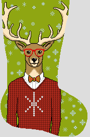 Gentleman Buck is a literary aficionado, and well seasoned writer of haiku, short stories and an occasional dystopian novel. He's often found immersed in a dictionary further expanding his vocabulary. Stitch one canvas or the entire Gentleman Critter Collection; these playful needlepoint stocking personas will add a charming twist to your holiday festivities! (DMC embroidery floss is optional, does not include finishing materials)