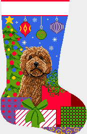 Waking up on Christmas morning only to be overjoyed upon discovering the bounty inside of one's stocking, is truly a wonderful part of the holiday! Not to mention spending time with those you love, and sharing the day with your beloved goldendoodle. Stitch this needlepoint stocking canvas and add that personal touch to your mantle piece. We would be happy to personalize this stocking with the name of your choice. (DMC embroidery floss is optional, does not include finishing materials)