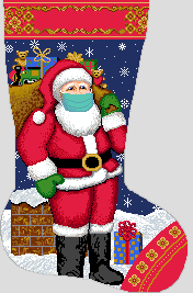 Straight from the North Pole, he's chubby, he's plump, he's a right jolly old elf! As Santa is not immune to the many changes that we’ve encountered in the past year, he has assured us that extra safety precautions will be made when delivering your packages this Christmas! Stitch this holiday stocking canvas with a light hearted twist on a traditional holiday theme. Be sure to personalize this stocking canvas, and make it extra special for the person who will find magic and treasures inside.  (DMC embroidery floss is optional, does not include finishing materials)Check out our blog post with two additional ornaments to compliment this stocking design: https://www.needlepaint.com/blog/2020/10/01/merry-x-mask-santa-face-mask-stocking-and-ornament-collection/
