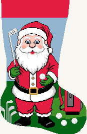 Thanks to his perfect swing . . . it's going to be a hole-in-one holiday! Needlepoint stitches meet athletic spirit -- yes, Santa's "got game" and ready to add a touch of sporty seasonal fun to your Christmas.