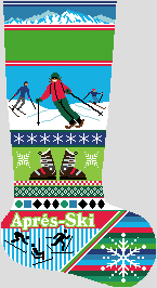 A fun bright snowy winter is coming to your fireplace. The Winter Ski Christmas Stocking Needlepoint Canvas is a perfect project for the families who love to spend time outdoors playing in the snow. This design not only can be done in tent stitches, but for the more adventures stitcher, this is a great one to mix in different patterns to make this a real eye popper!The name will be personalized on your canvas, so please don't forget to include that in the notes on this page when you place your order. (DMC embroidery floss is optional, does not include finishing materials)